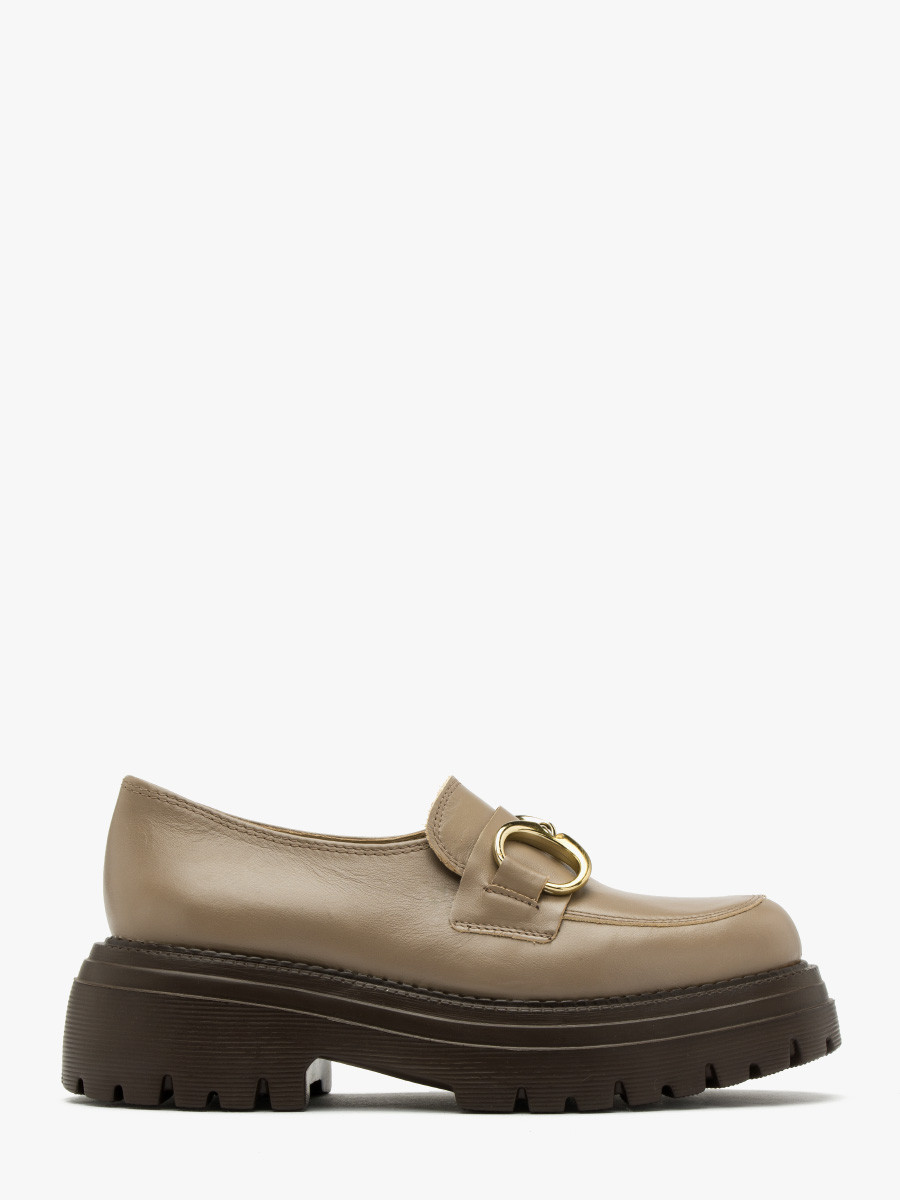 Ciemnobeowe mokasyny ze srebrn ozdob