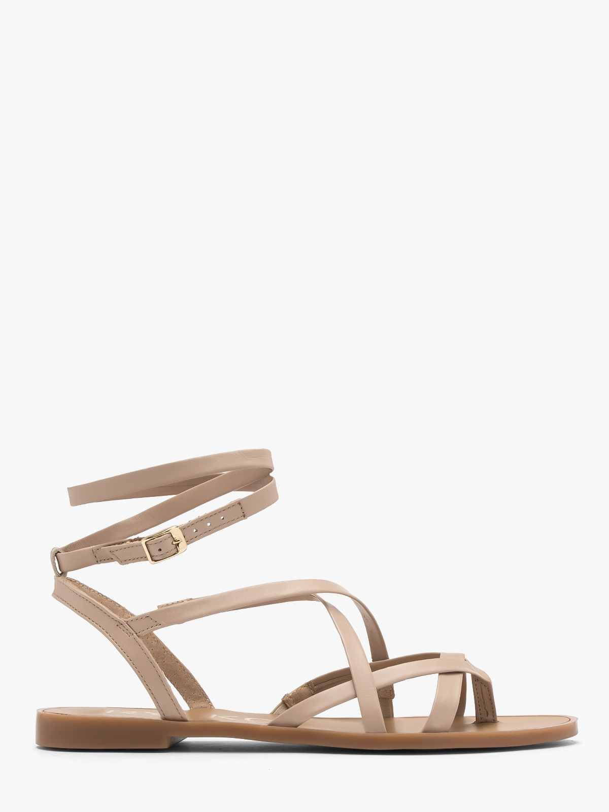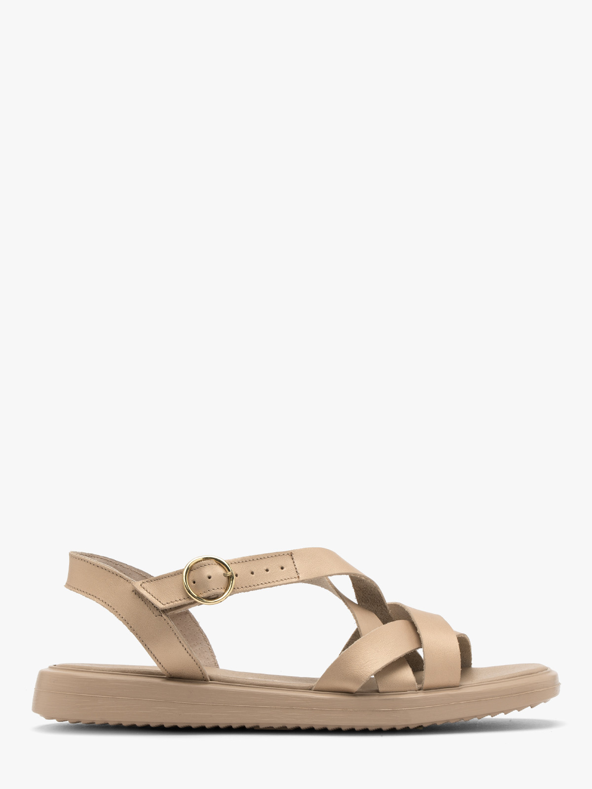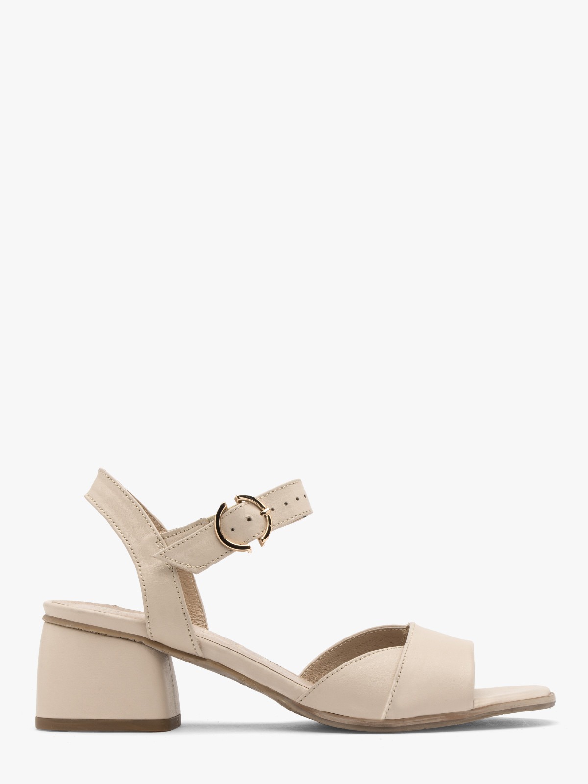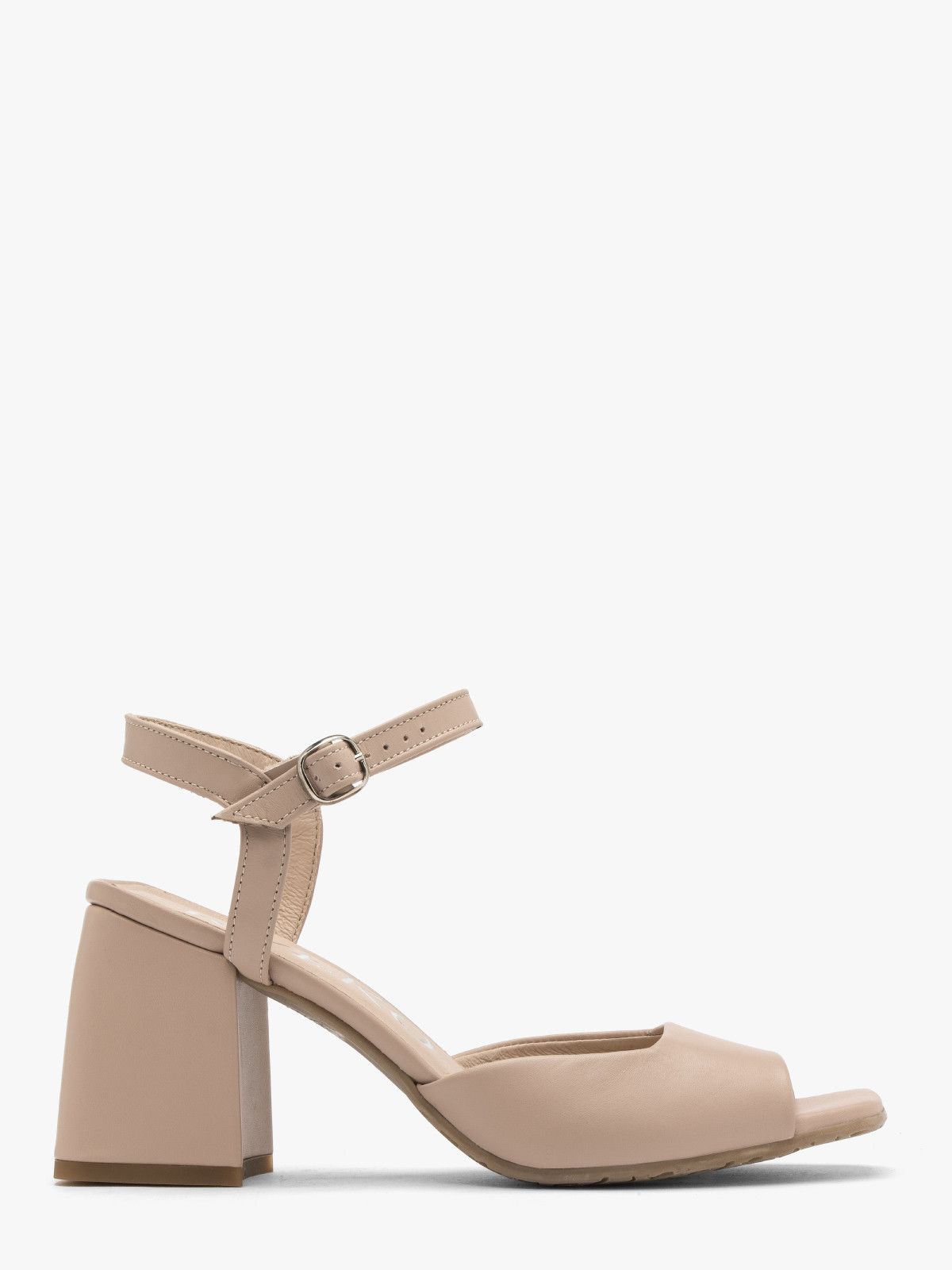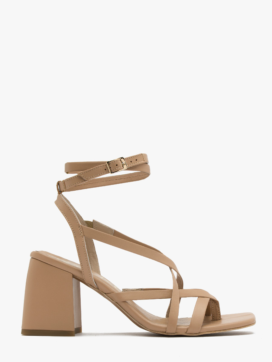 Jasnobrzowe sanday typu japonki na masywnym obcasie