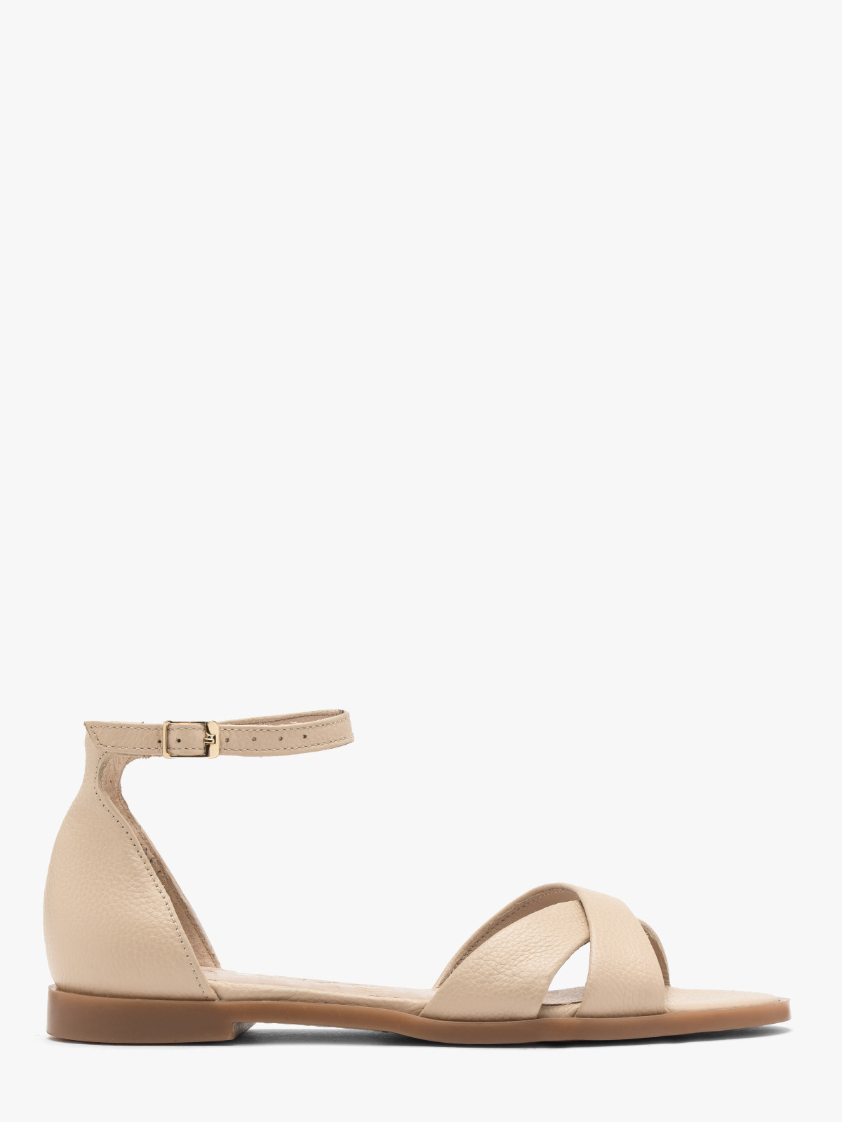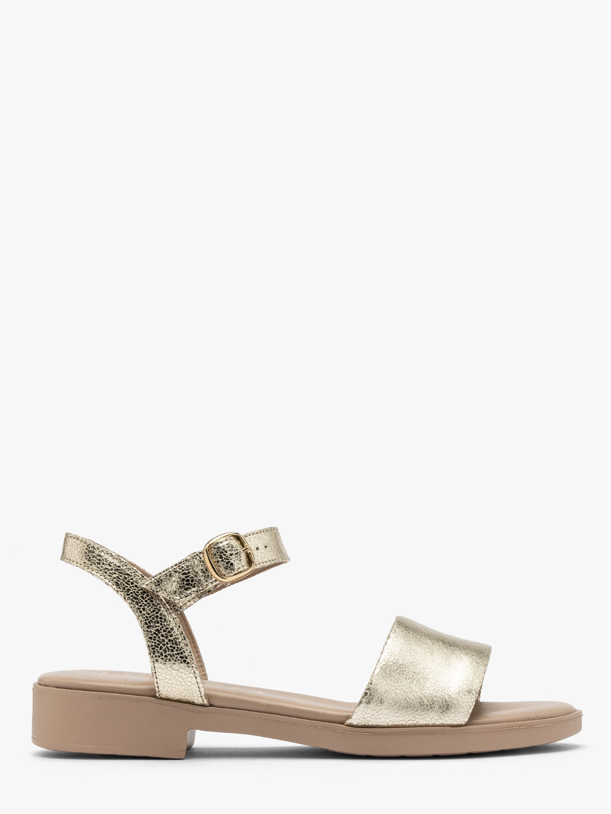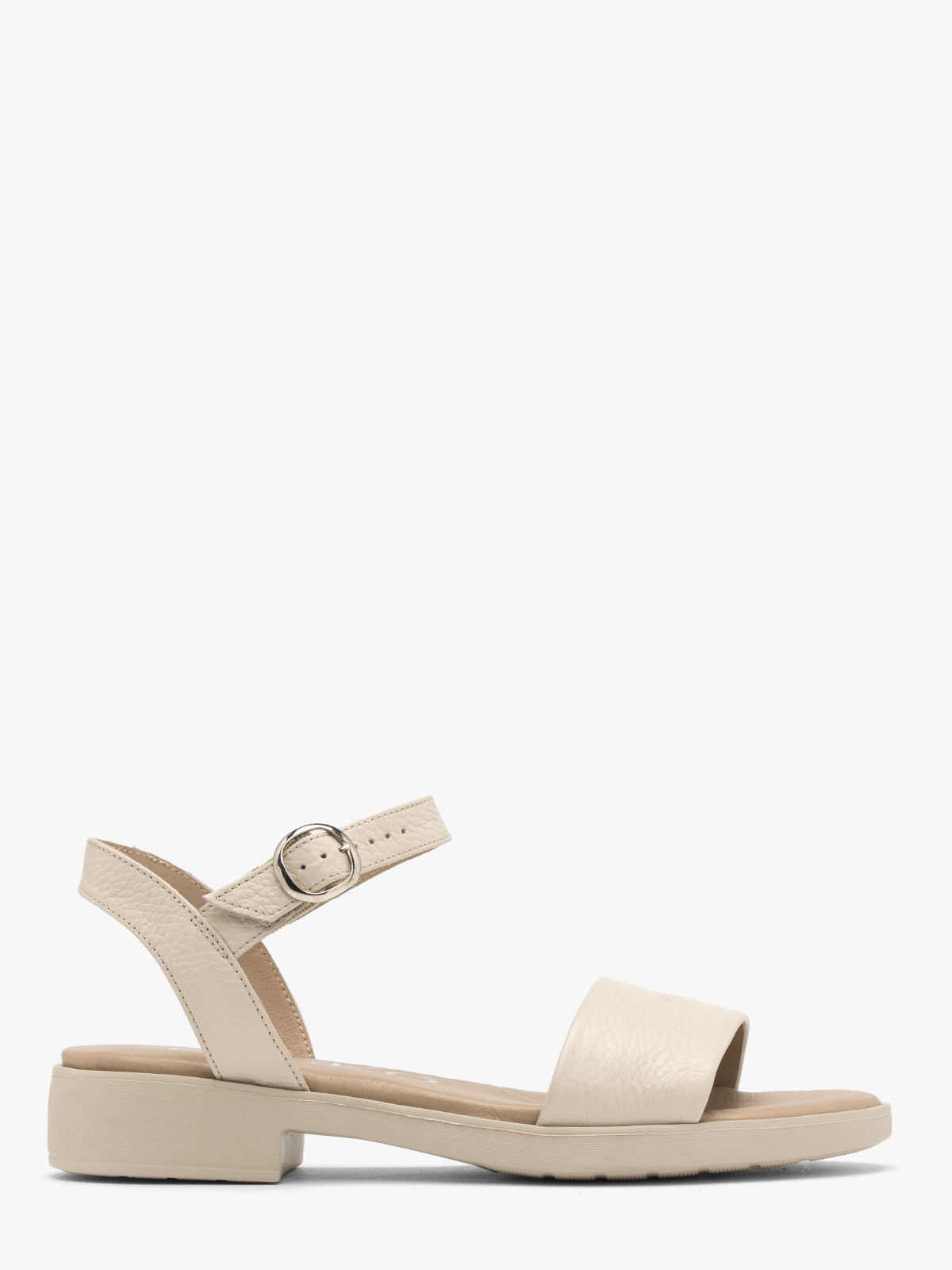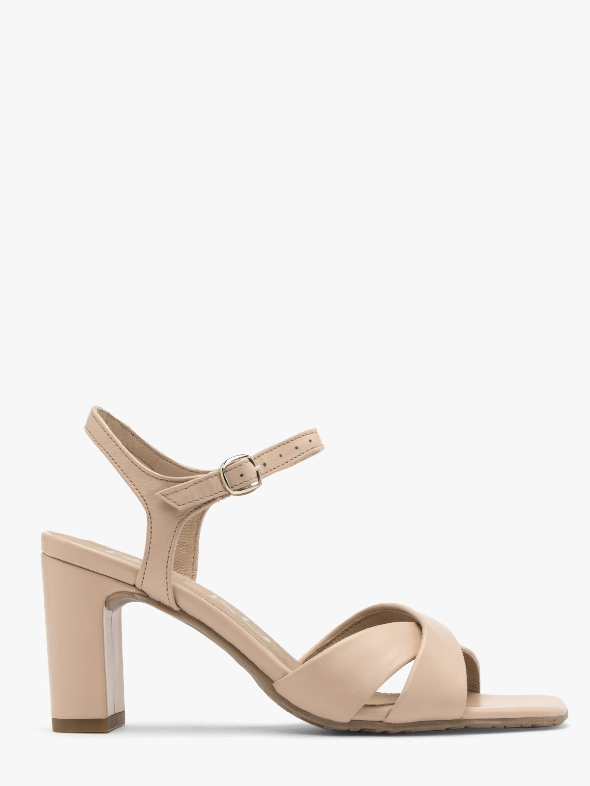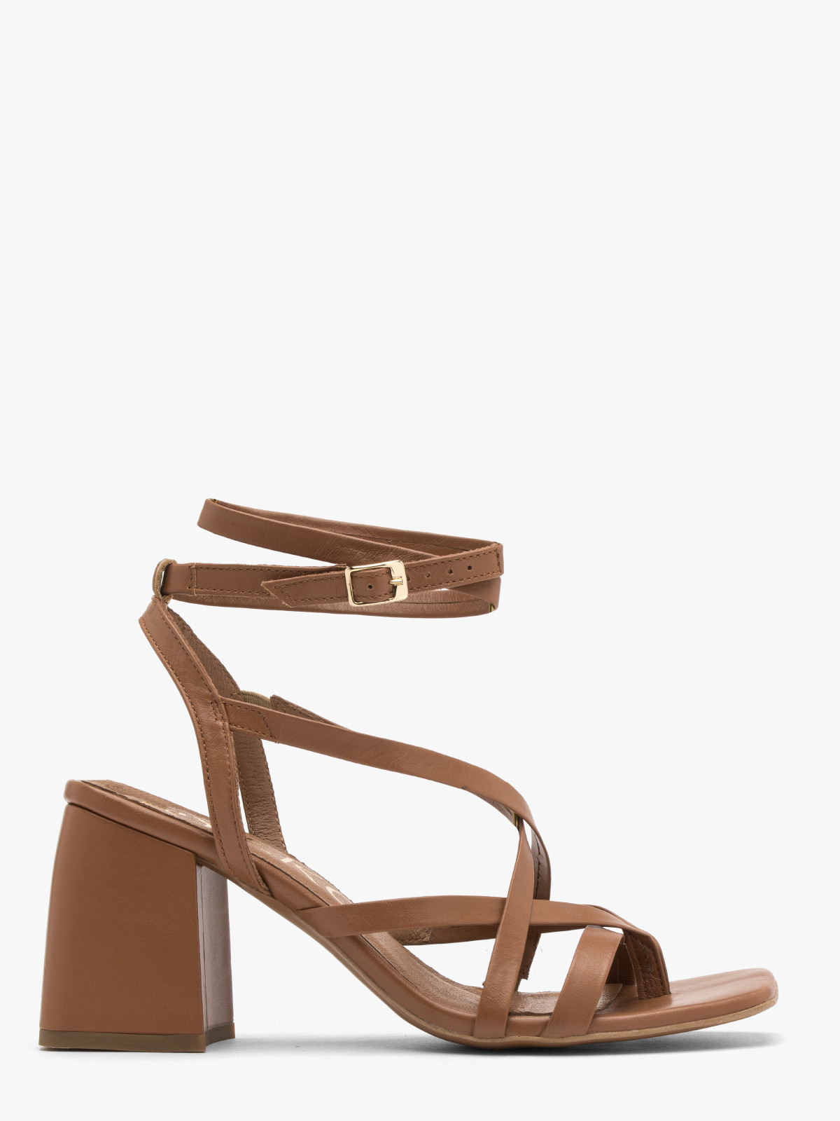 Jasnobrzowe sanday typu japonki na masywnym obcasie