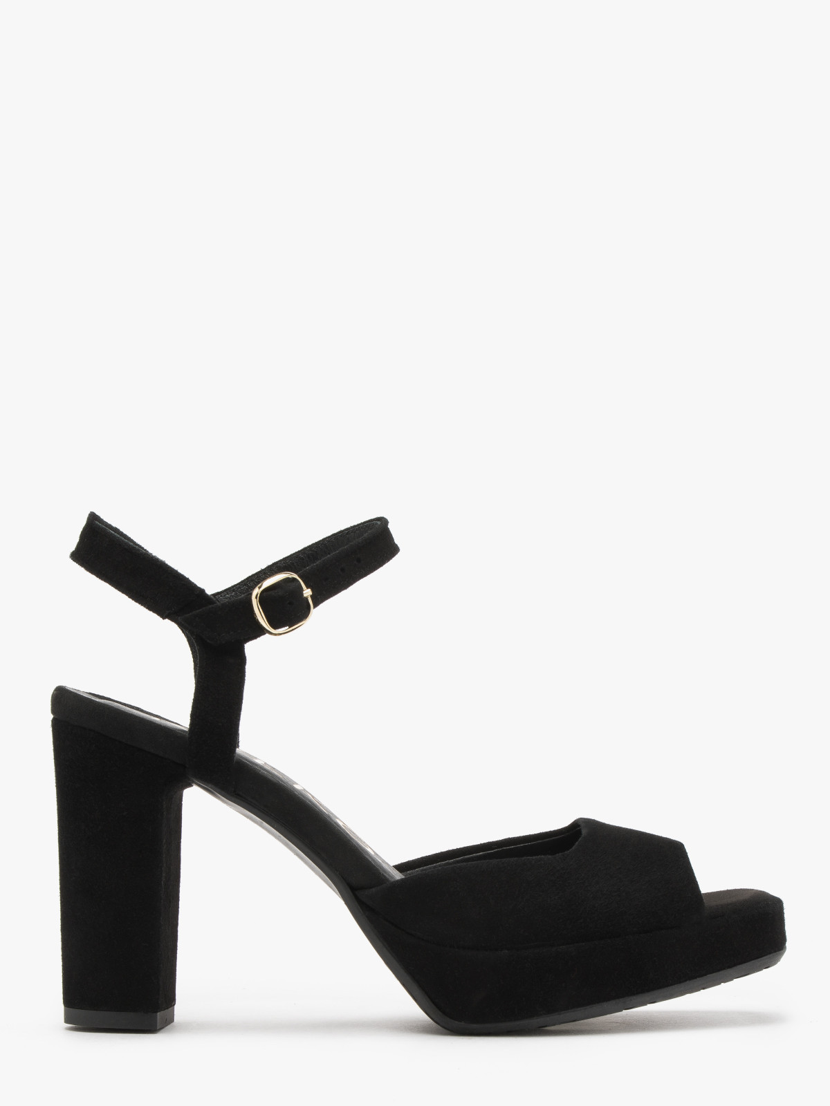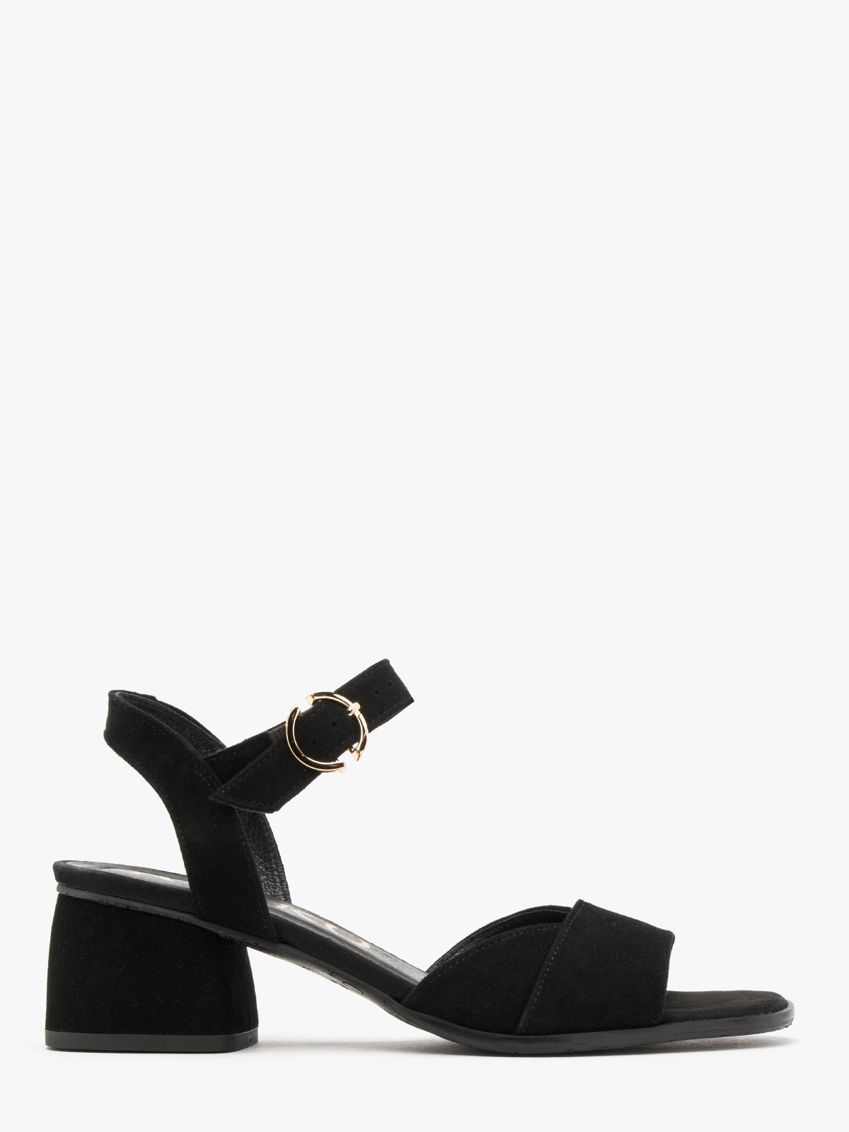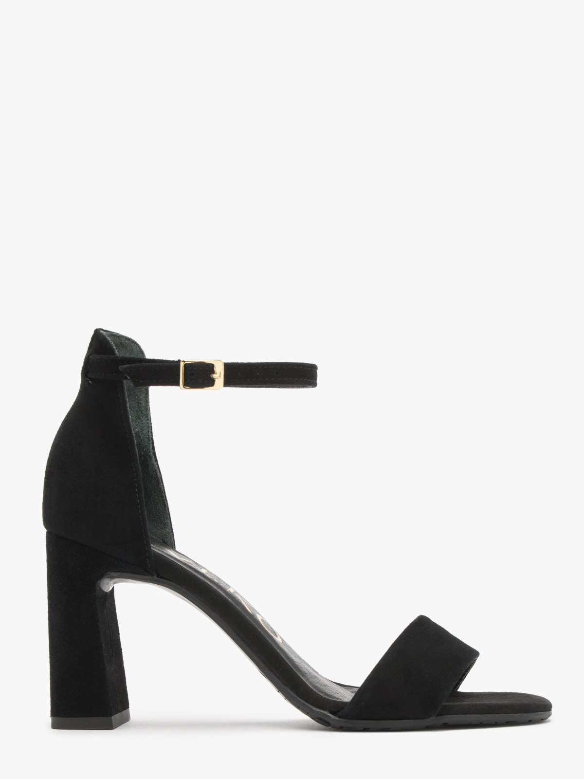 Czarne, welurowe sanday na wysokim supku oraz balu