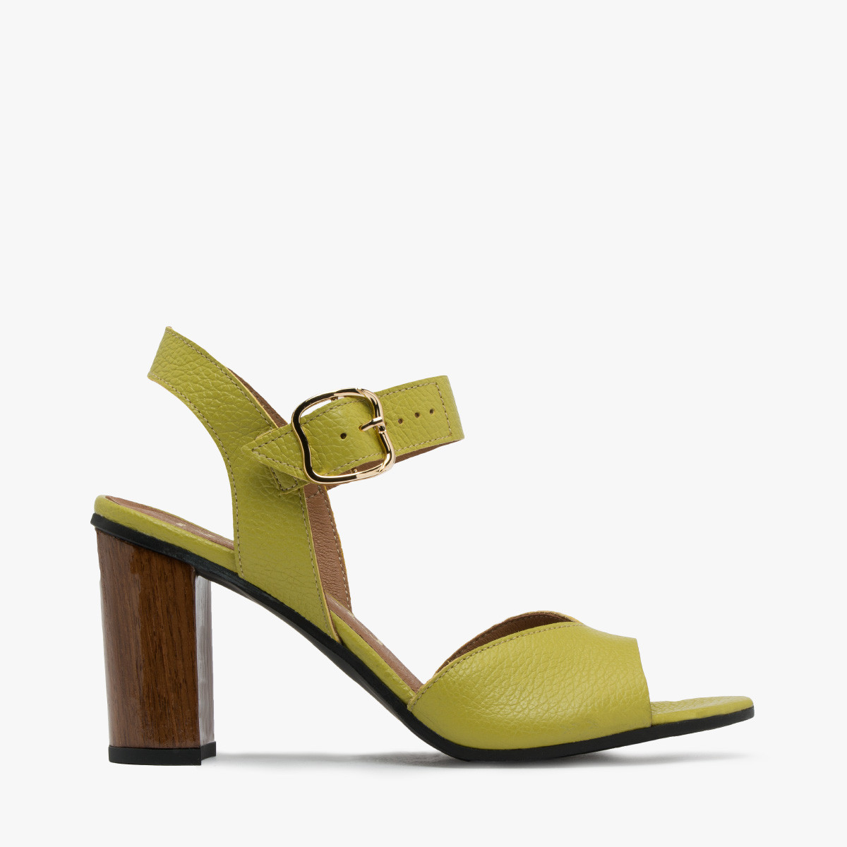 Limonkowe sanday na drewnianym supku