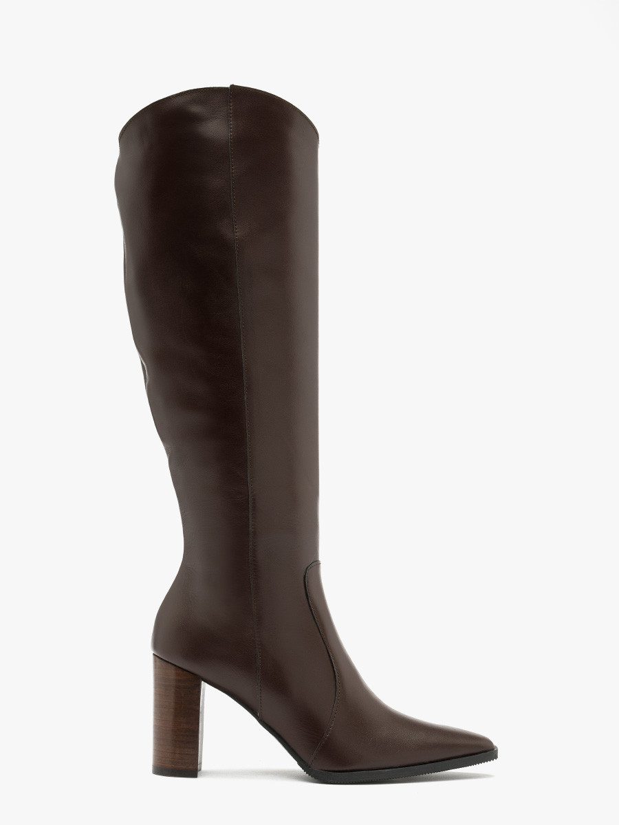 Ciemnobrzowe kozaki z ozdobn cholewk