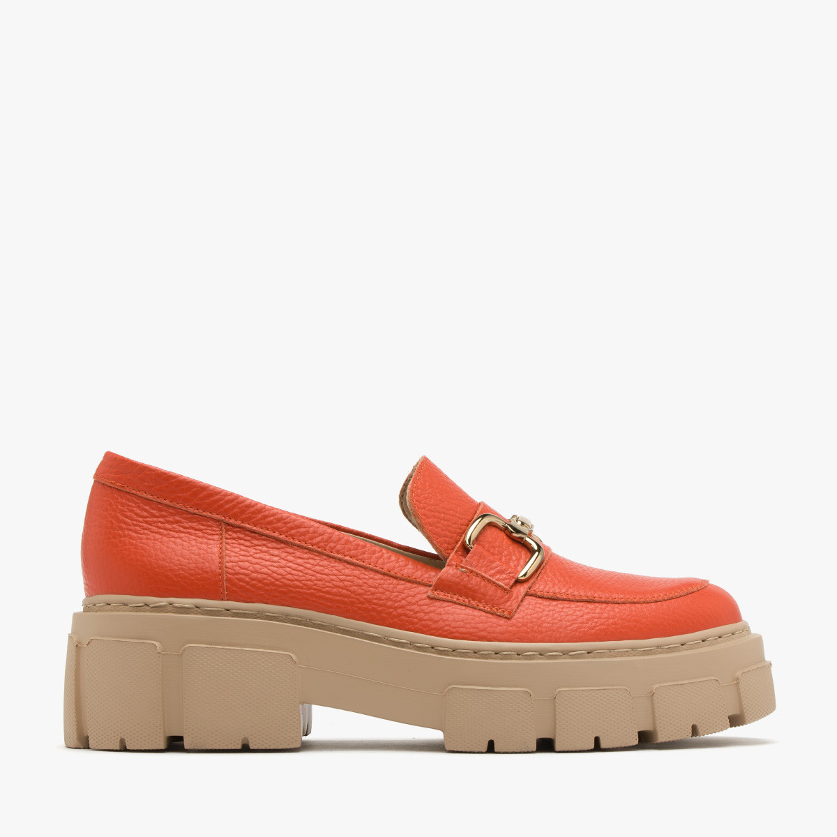 Pomarańczowe mokasyny ze zot ozdob