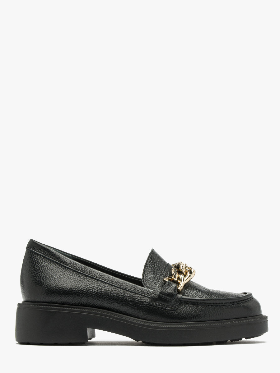 Czarne mokasyny ze zotym ańcuchem