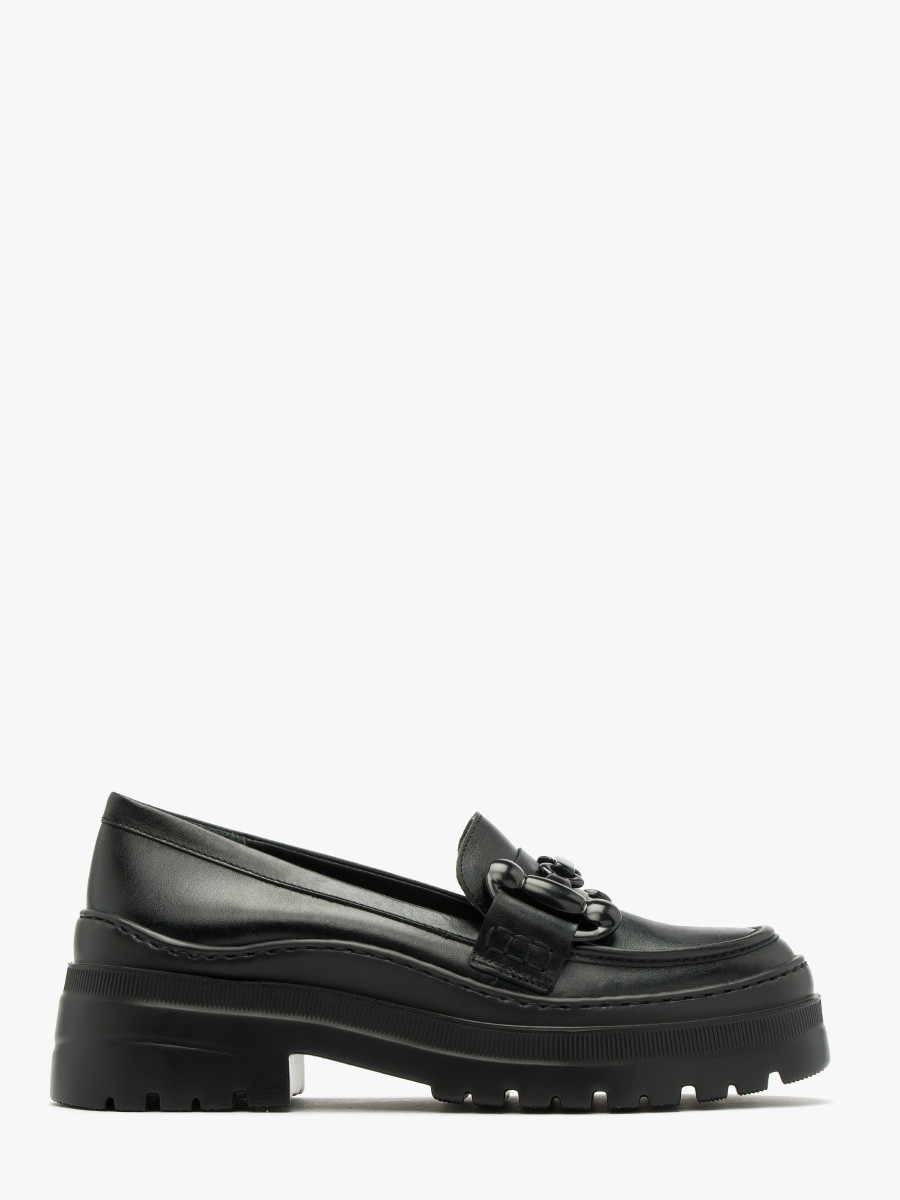 CZARNE MOKASYNY NA PASKIEJ PODESZWIE