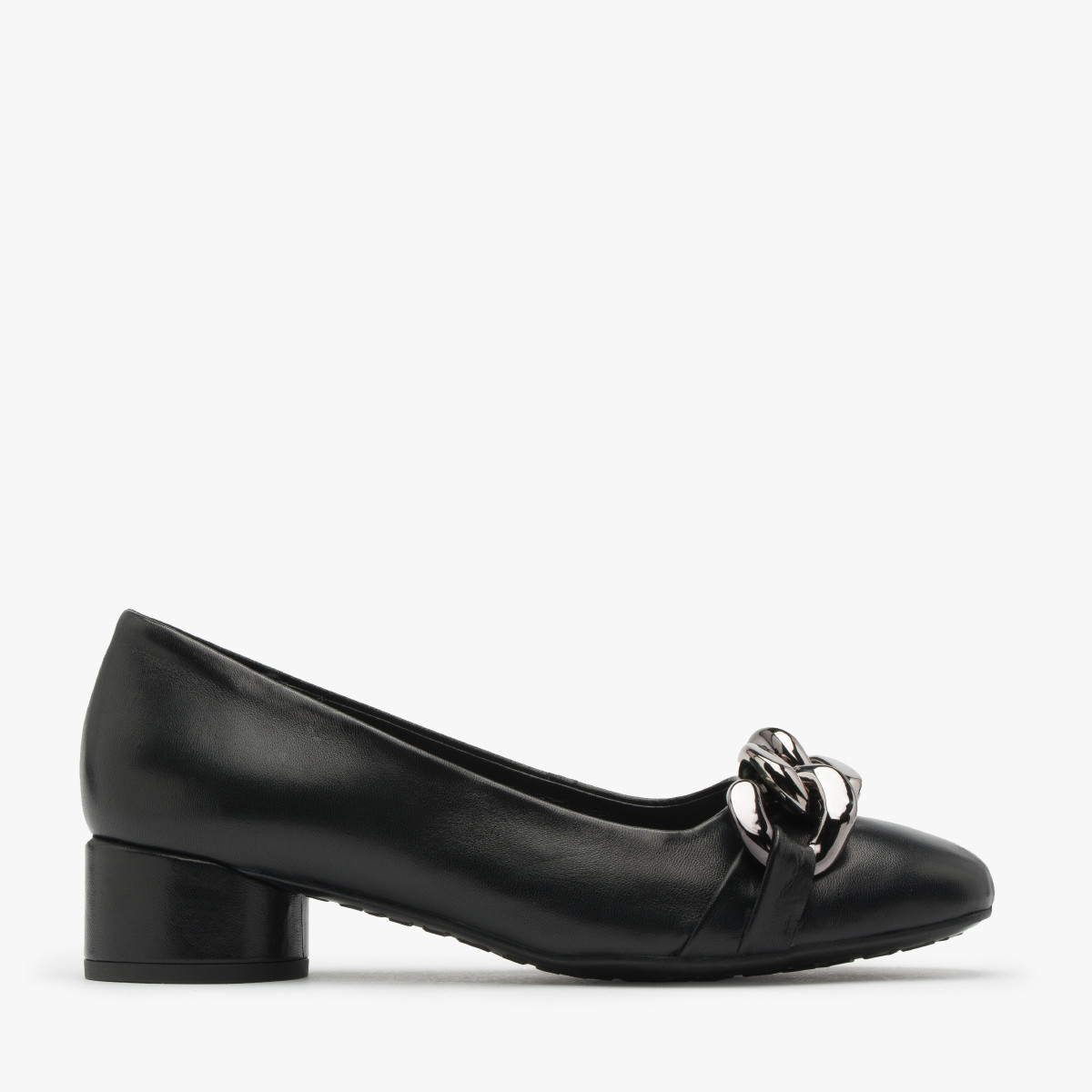 Czarne czóenka z masywnym ańcuchem