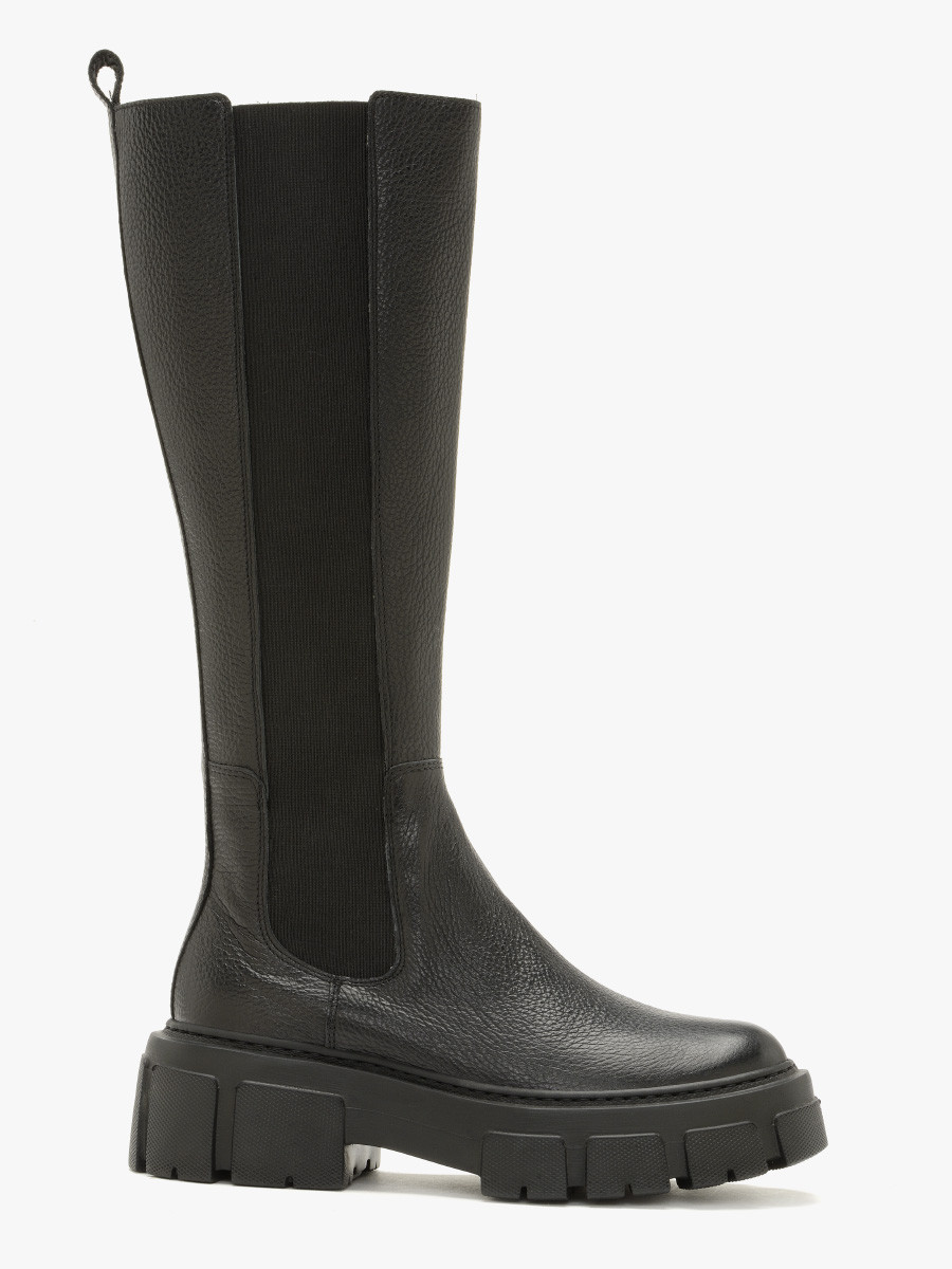 Czarne kozaki w stylu wysokich sztybletów