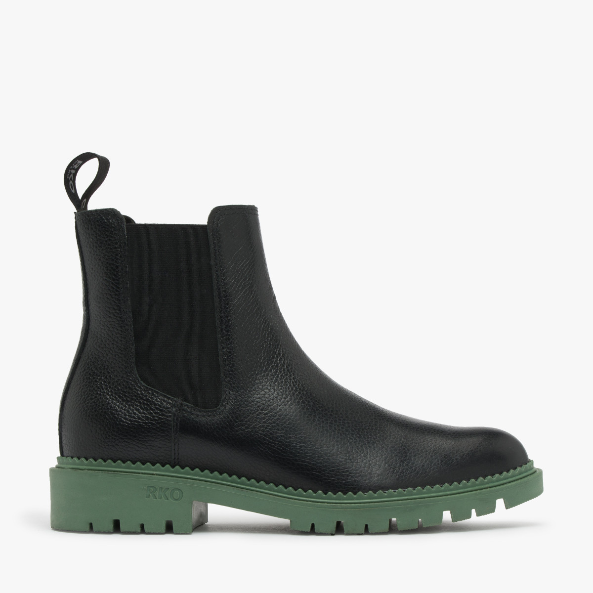 Czarne sztyblety na zielonym spodzie