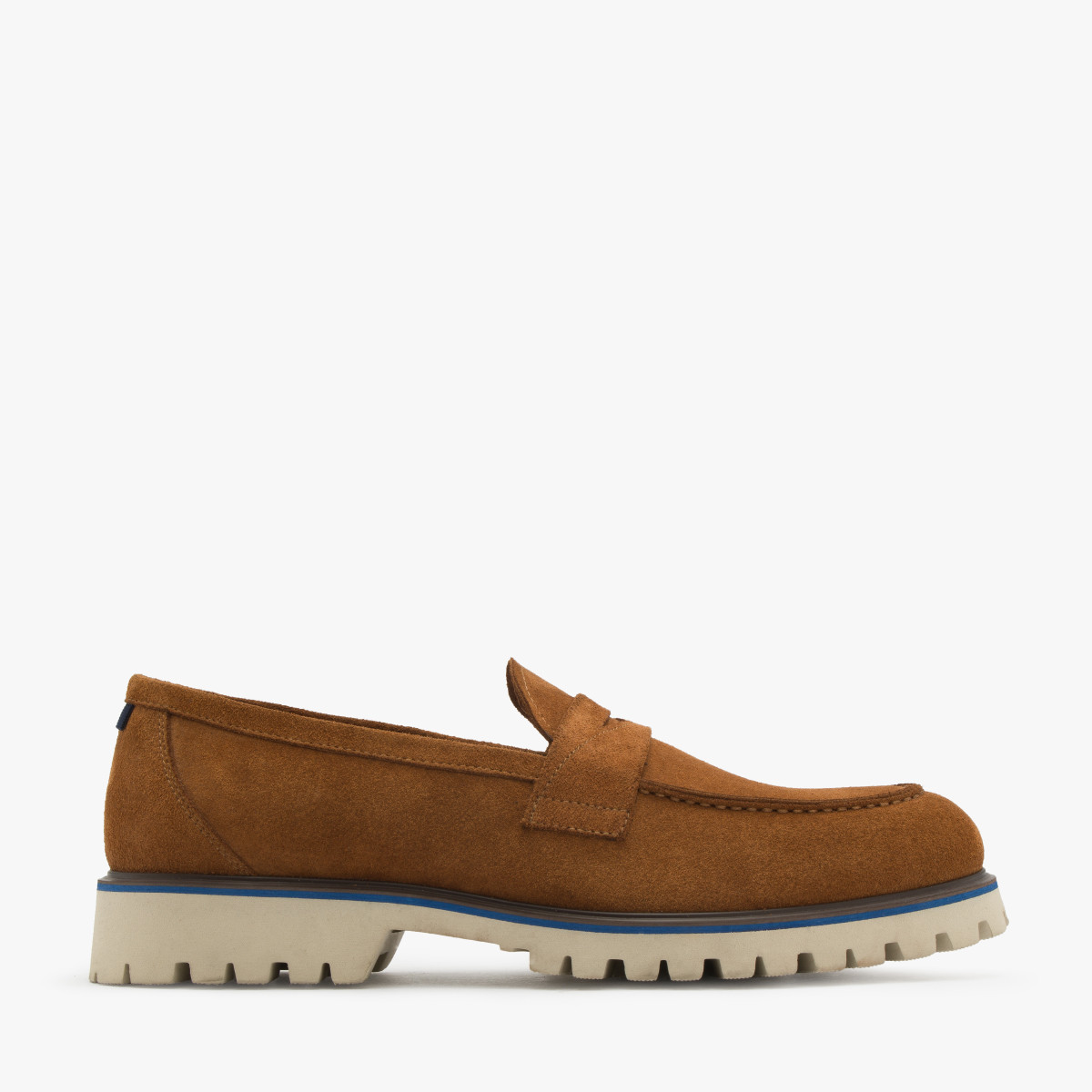 Ciemnobrzowe mokasyny z niebiesk podeszw