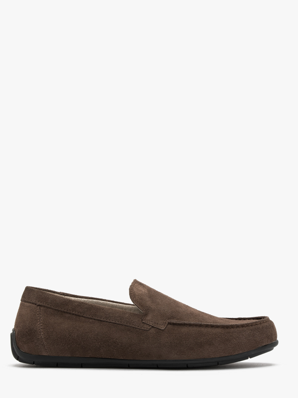 Ciemnobrzowe póbuty mskie z ozdobnym przeszyciem