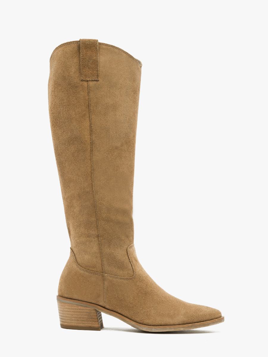 Kremowe kozaki z wsk cholewk