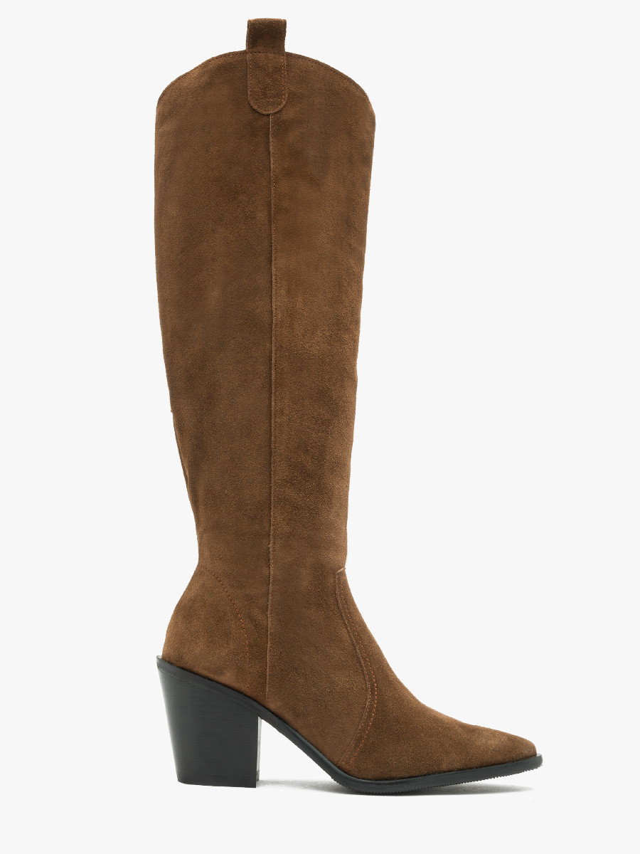 Brzowe kozaki na masywnym obcasie