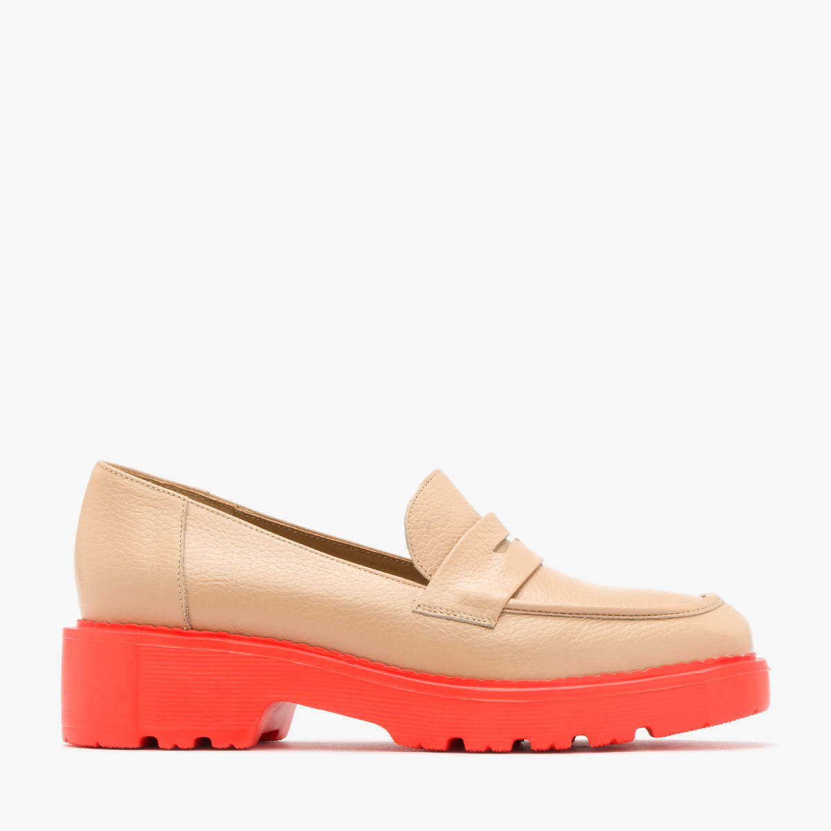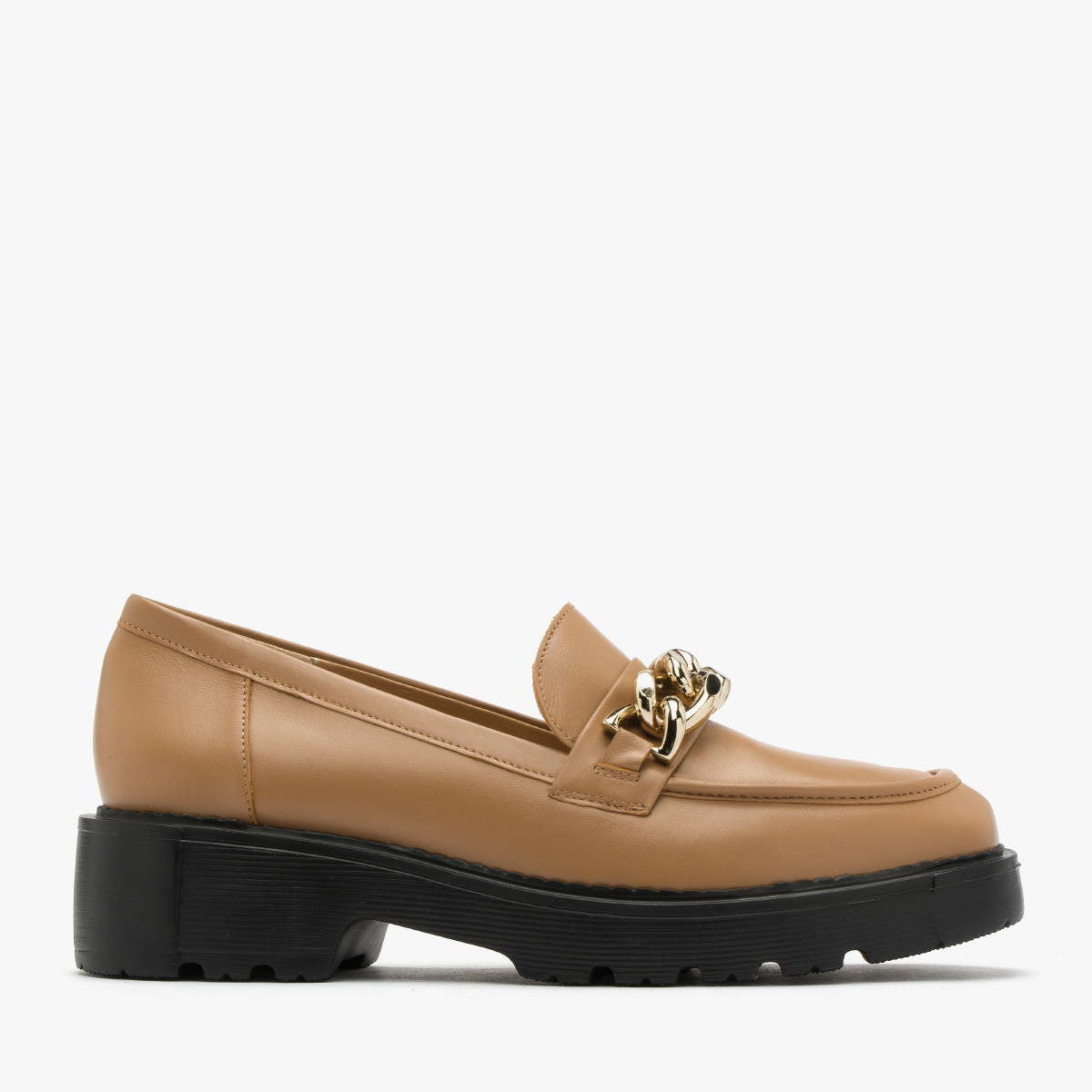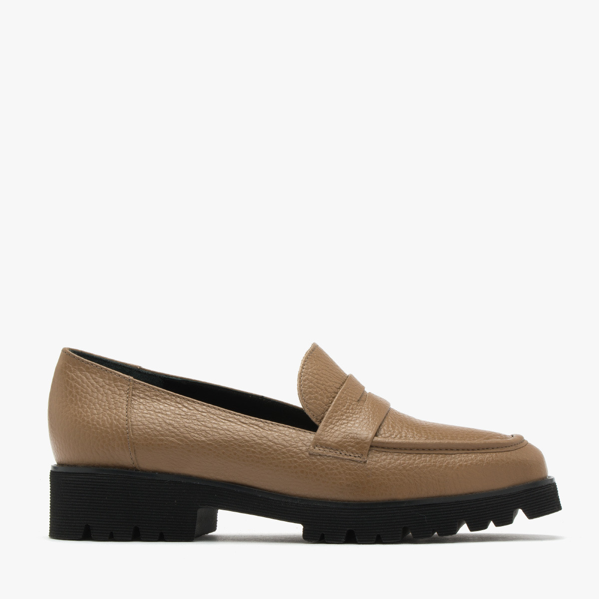 Kawowy mokasyn na traktorowej podeszwie