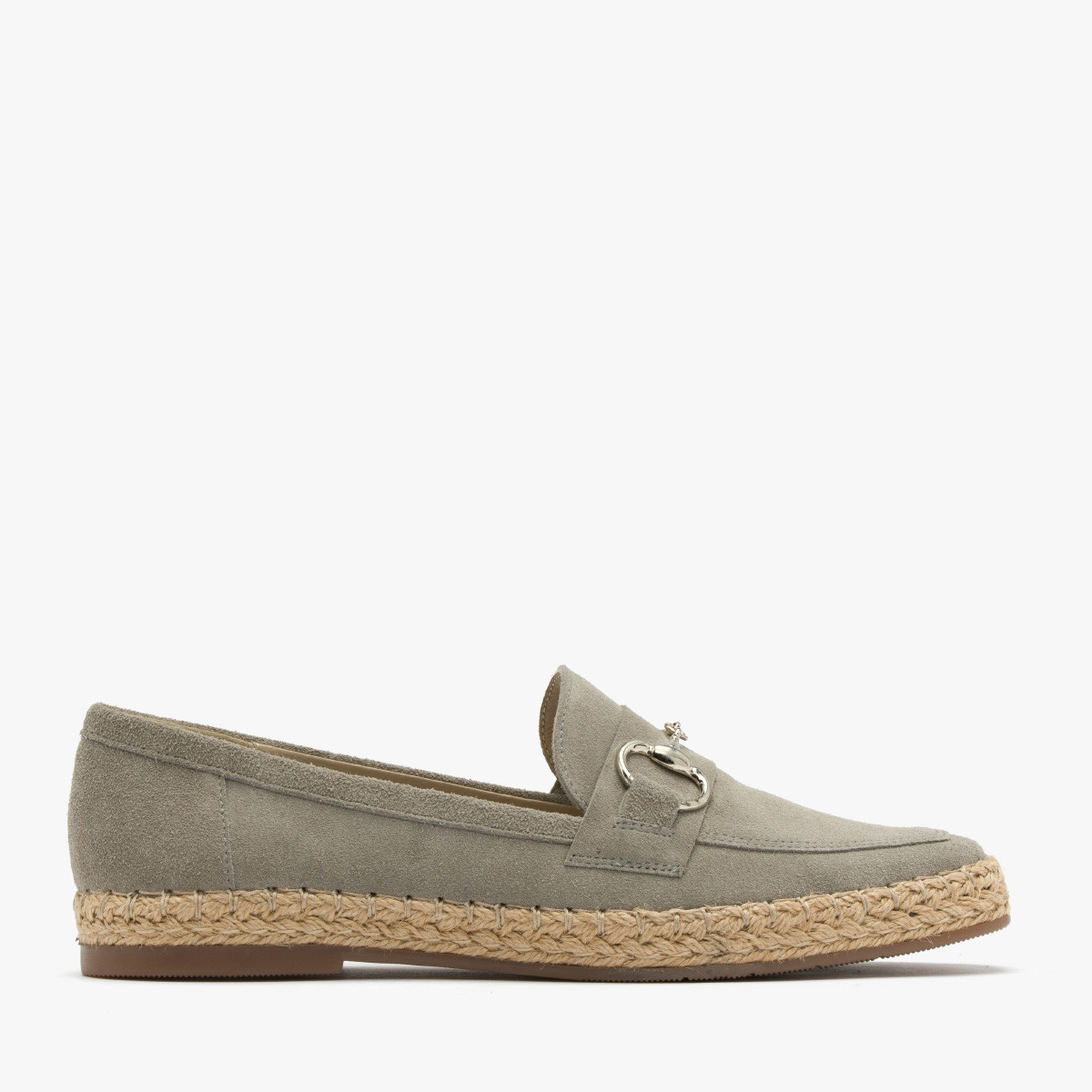 Jasnoszare mokasyny ze srebrn ozdob