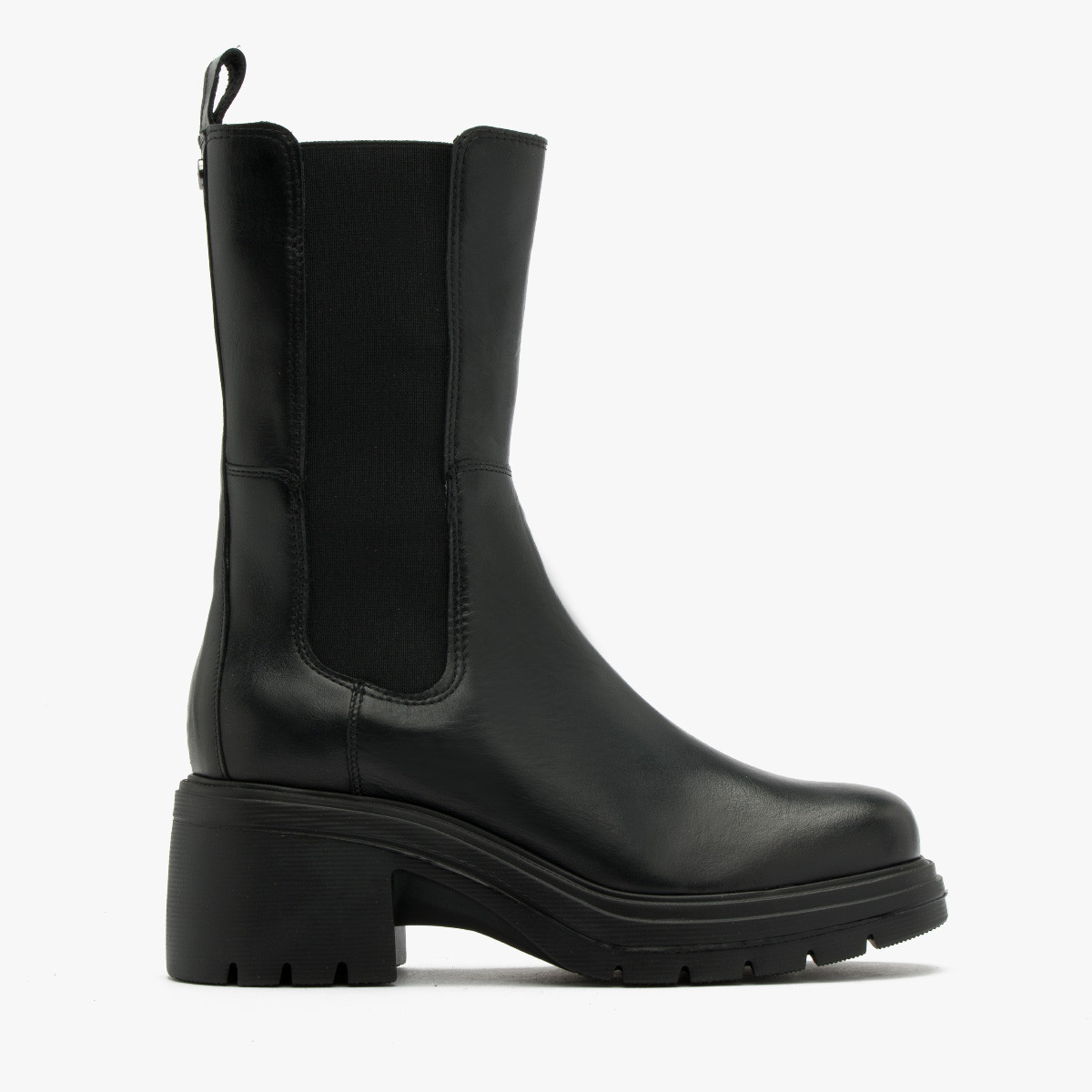 Czarne sztyblety na masywnym obcasie