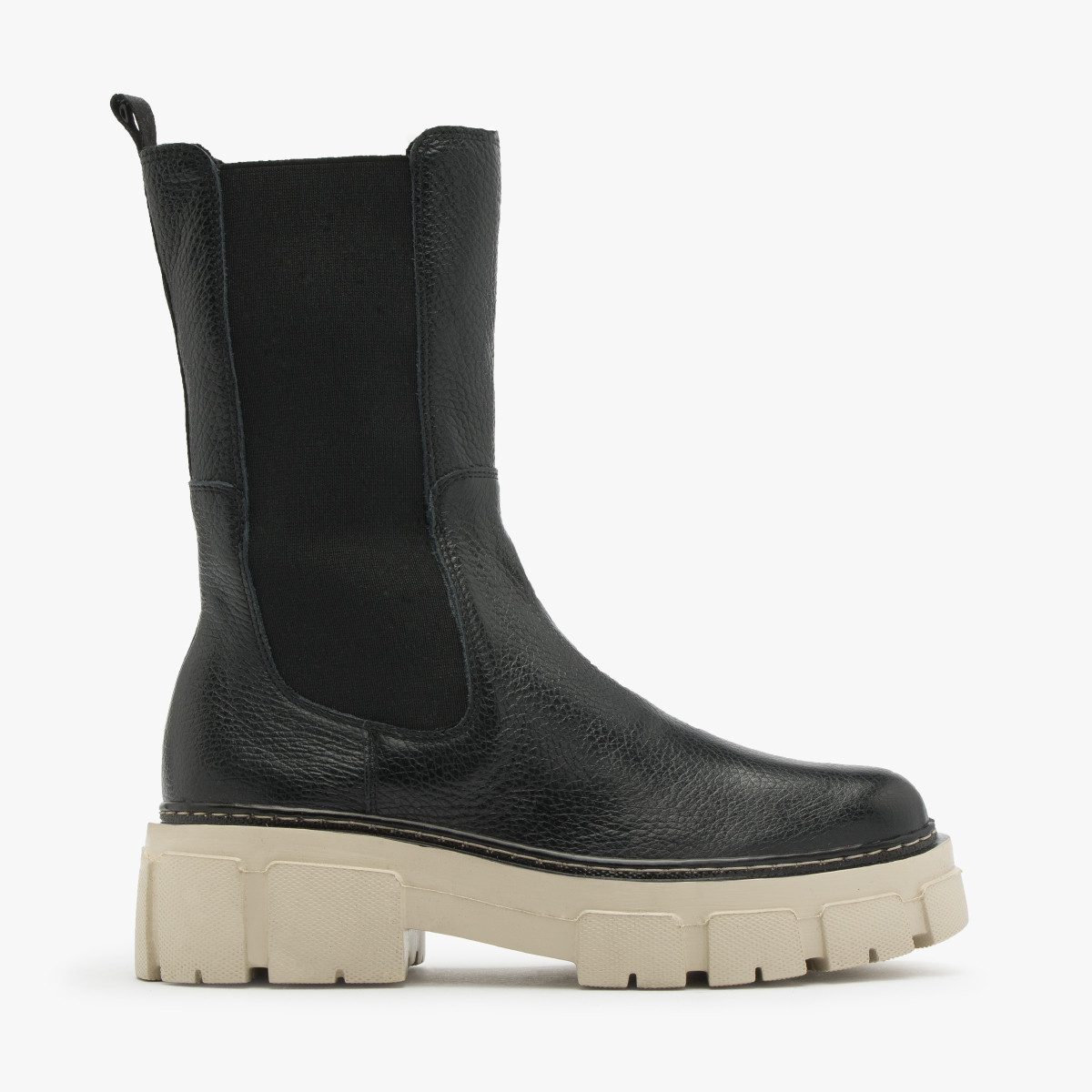 Czarne sztyblety na kremowym spodzie
