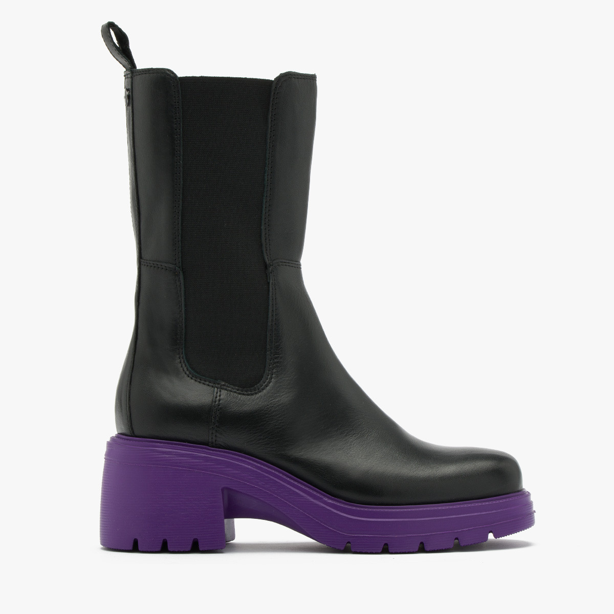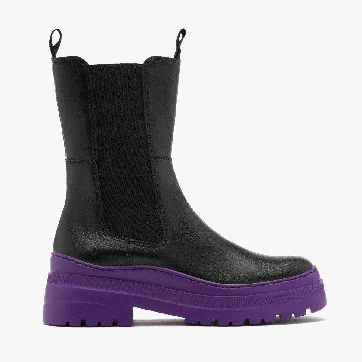 Czarne sztyblety na fioletowym spodzie