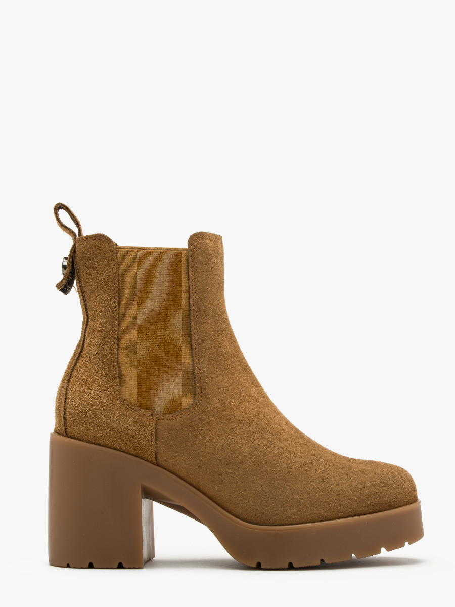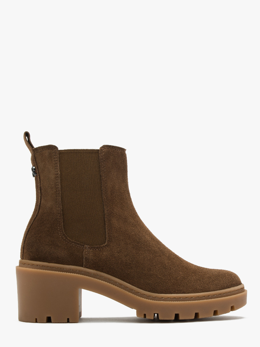 Brzowe botki na obcasie z logotypem