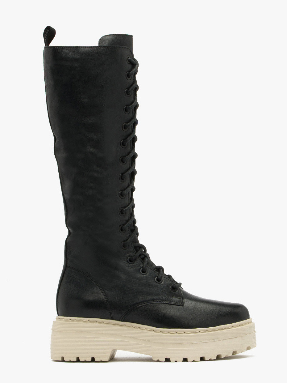 Czarne trzewiki na grubej kremowej podeszwie