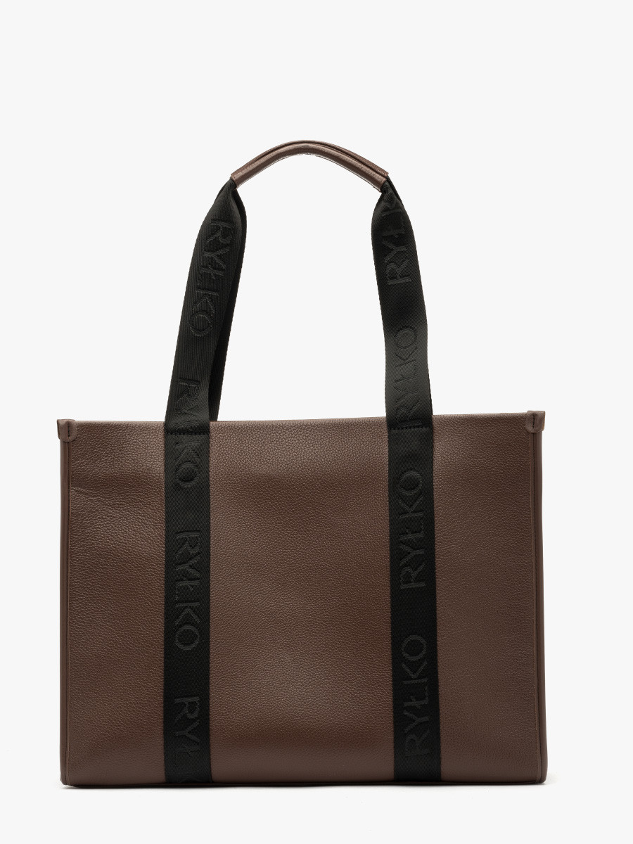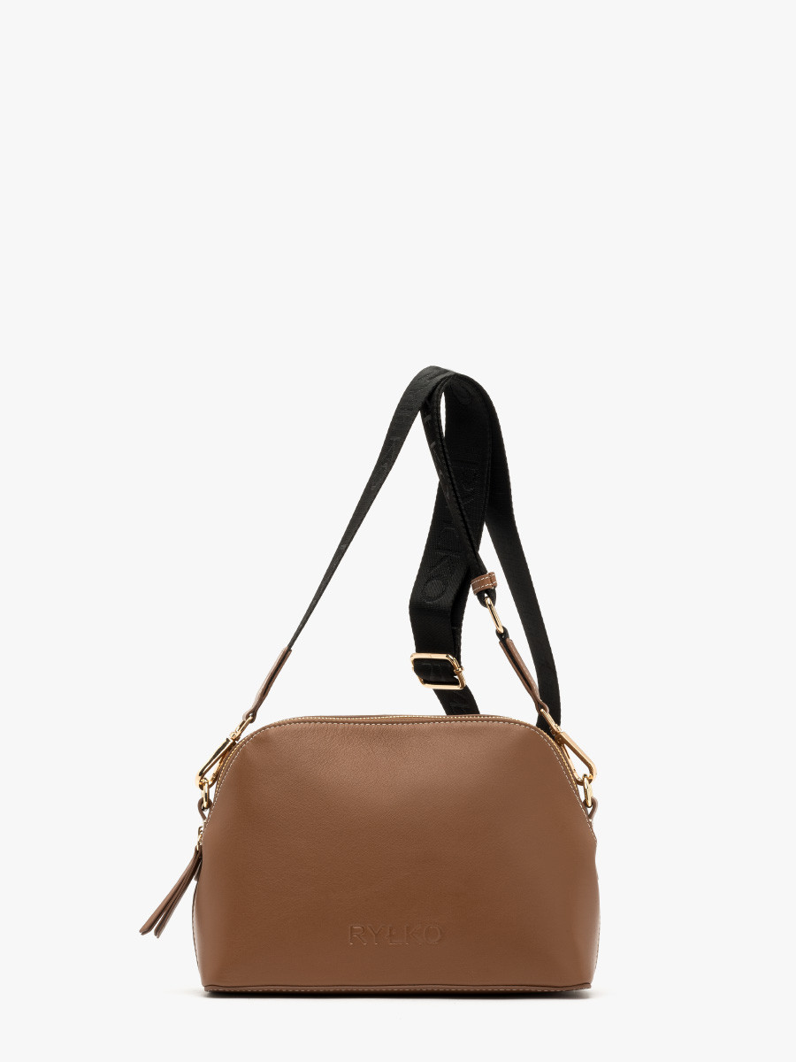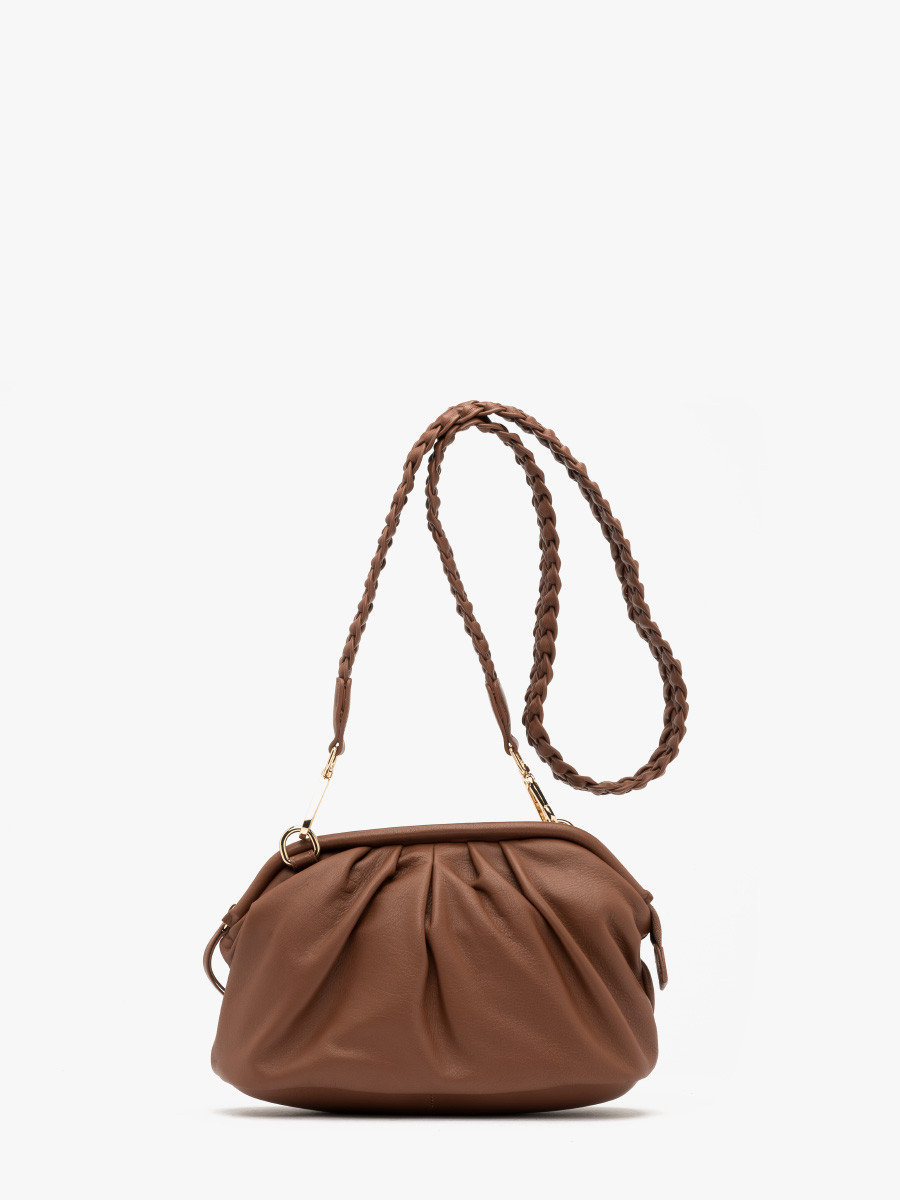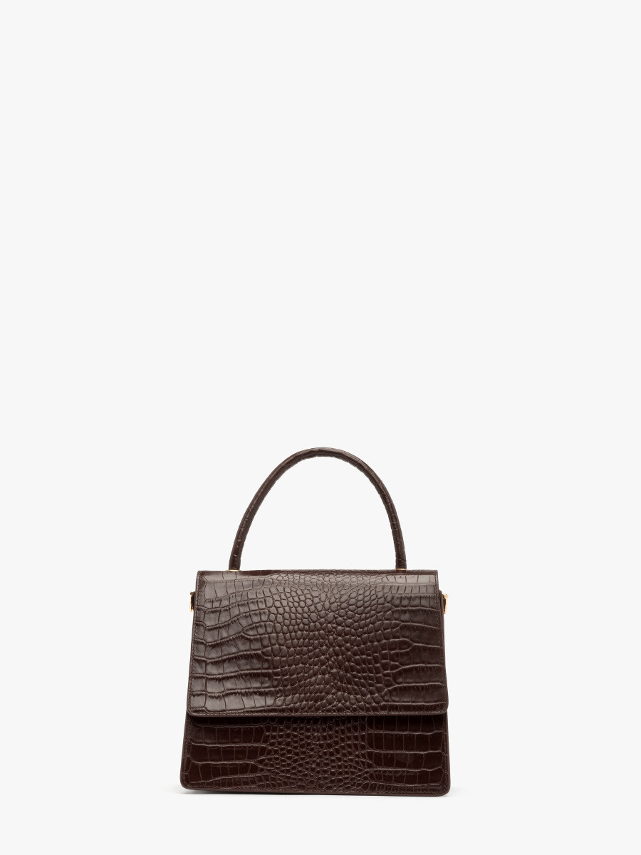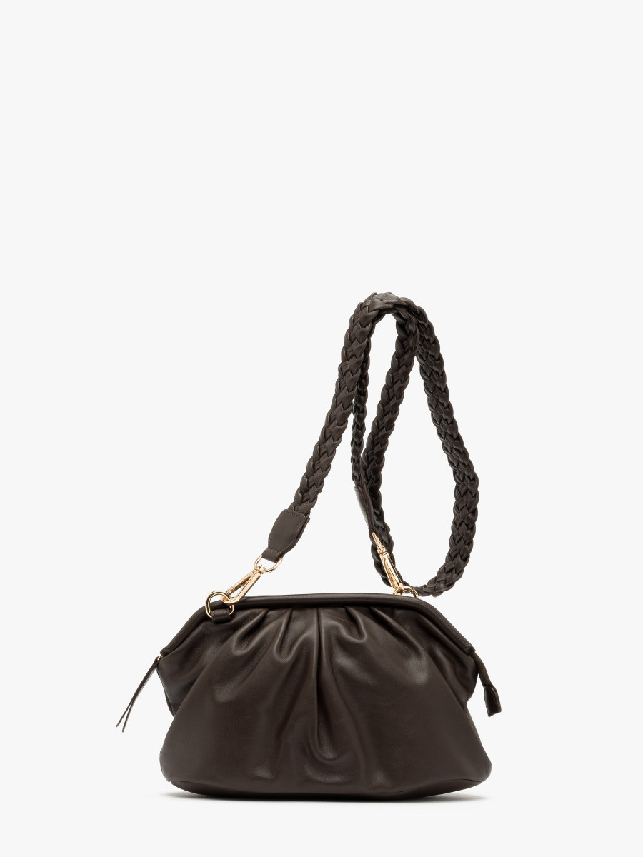 Maa ciemnobrzowa torebka z ozdobnym paskiem