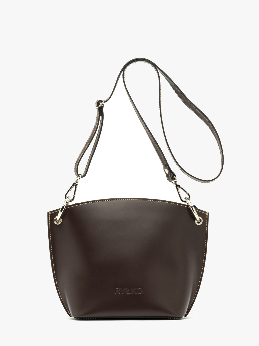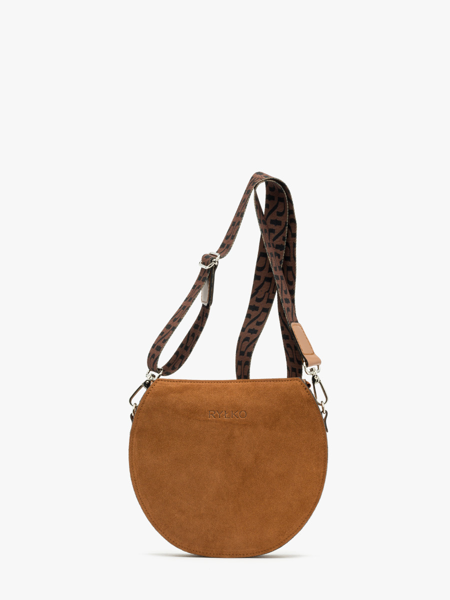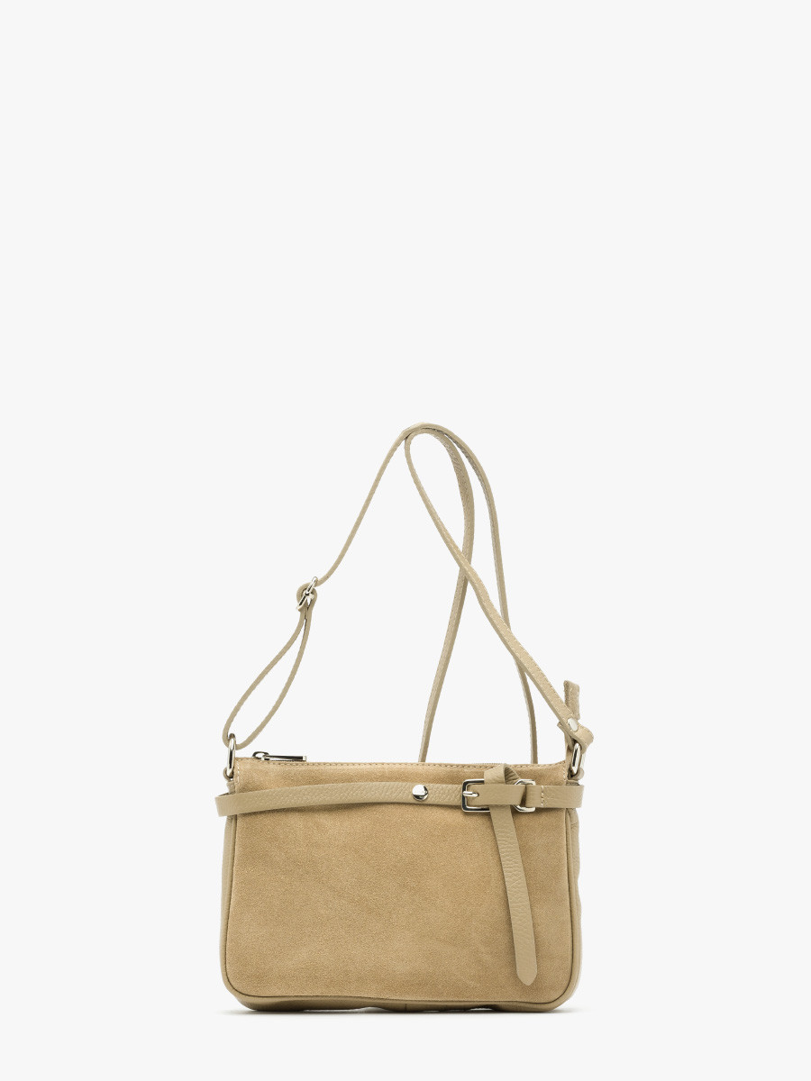 Maa ciemnobeowa torebka z ozdobnym paskiem