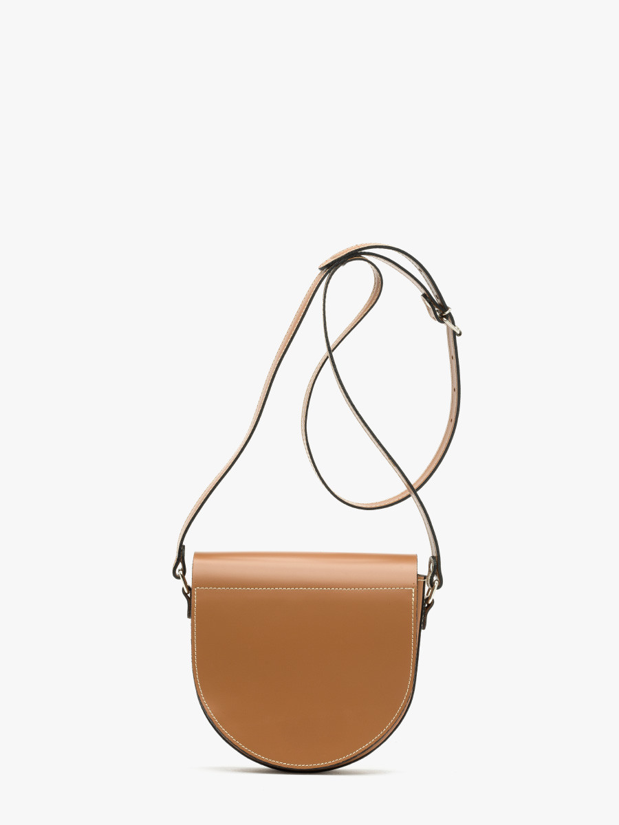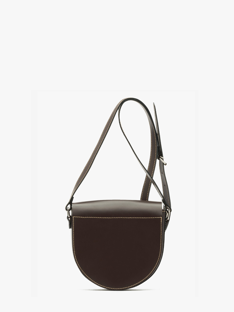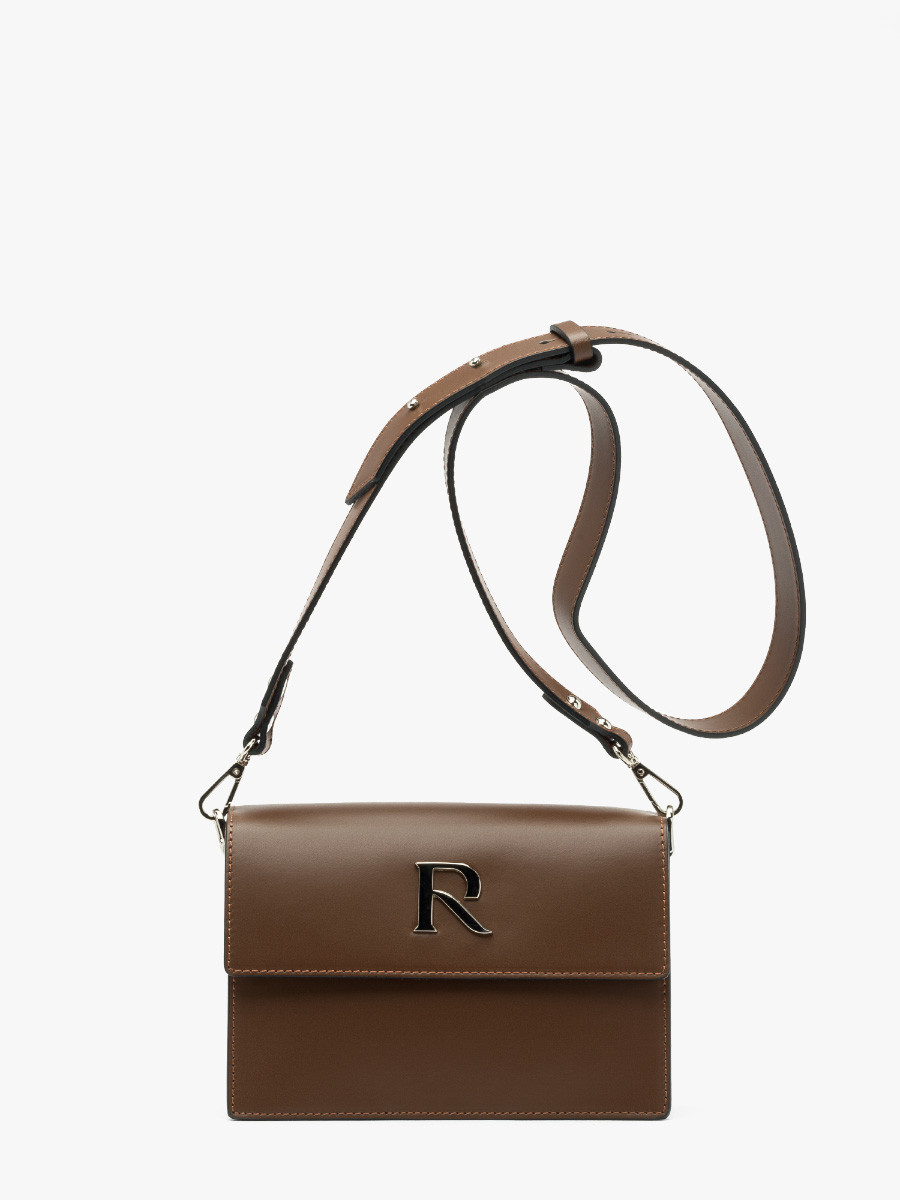 Maa ciemnobeowa torebka z ozdobnym paskiem