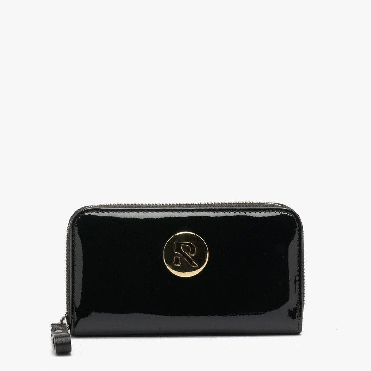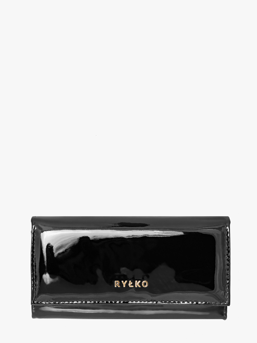 Czarny lakierowany portfel damski
