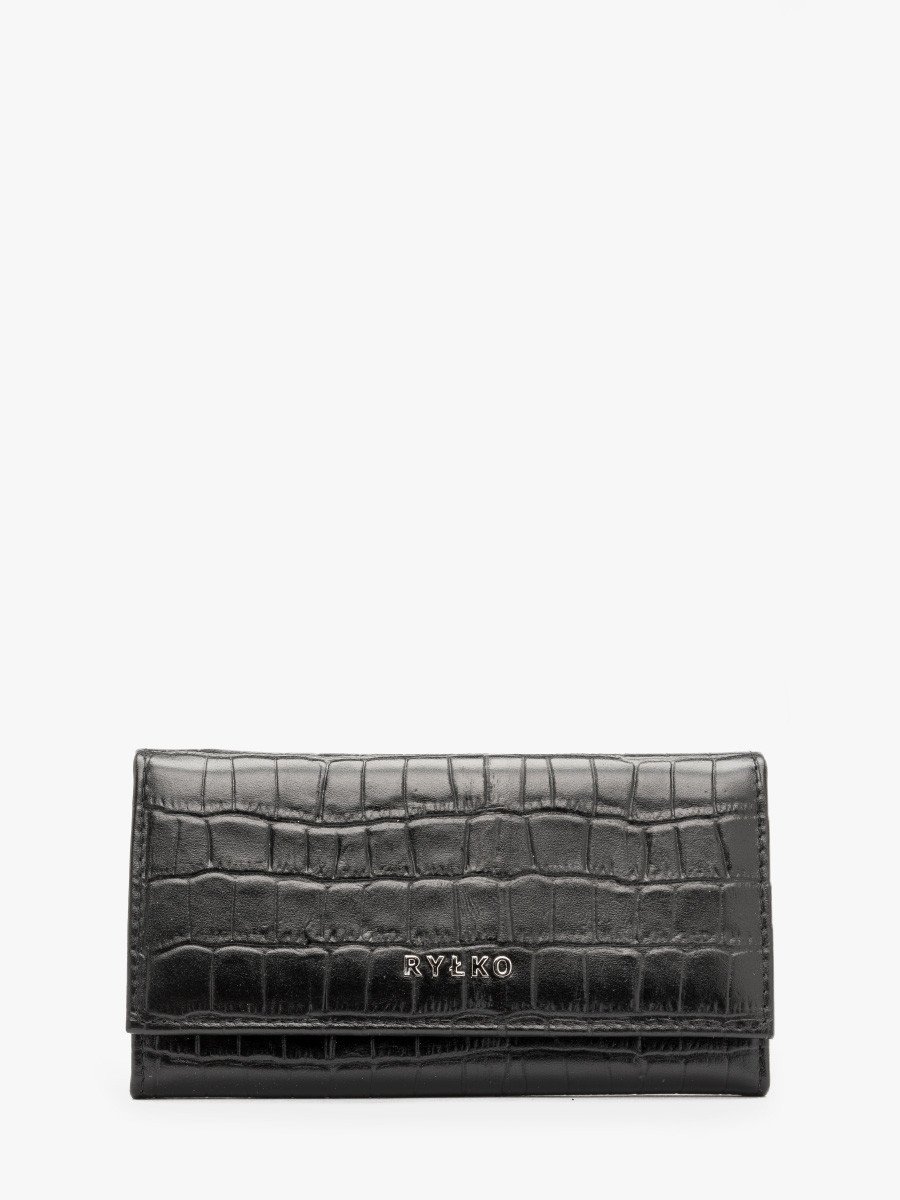 Czarny portfel damski z ozdobn faktur