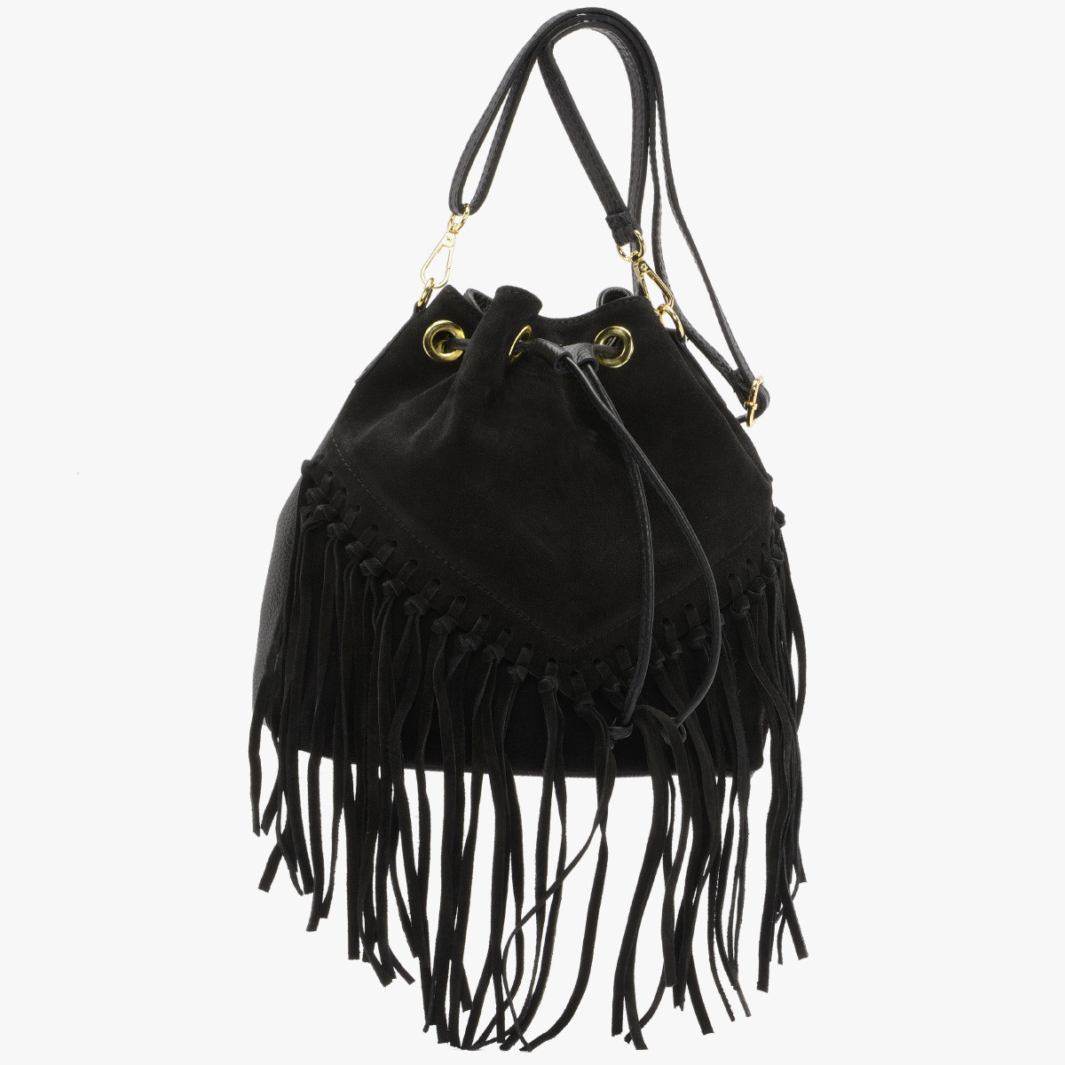 Czarna torebka z frdzlami