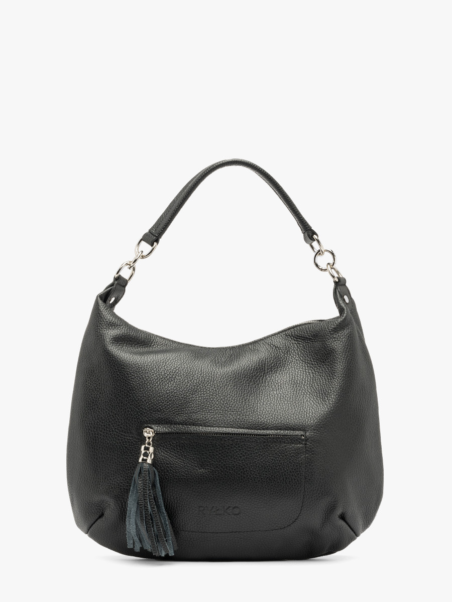 Czarna, pakowna torebka z ozdobnym frdzlem
