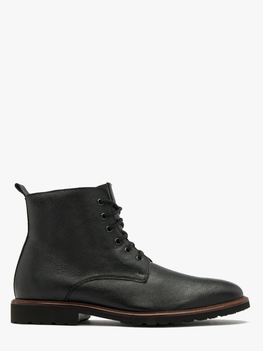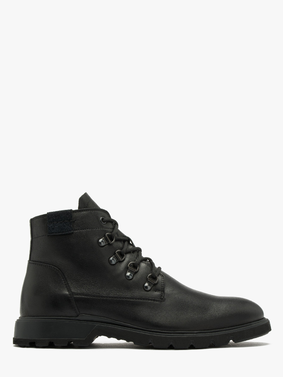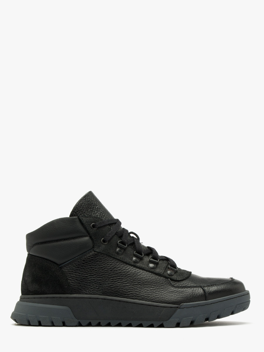 Czarny trzewik mski z ozdobnym otokiem na spodzie